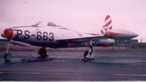 F-84B_at_Bangor Previous Next Published July 2, 2018 at 480 × 271 in 1950’s F-84B at Dow AFB, Bangor, ME. Note the red and white squadron color markings on the aircraft. Like Loading...